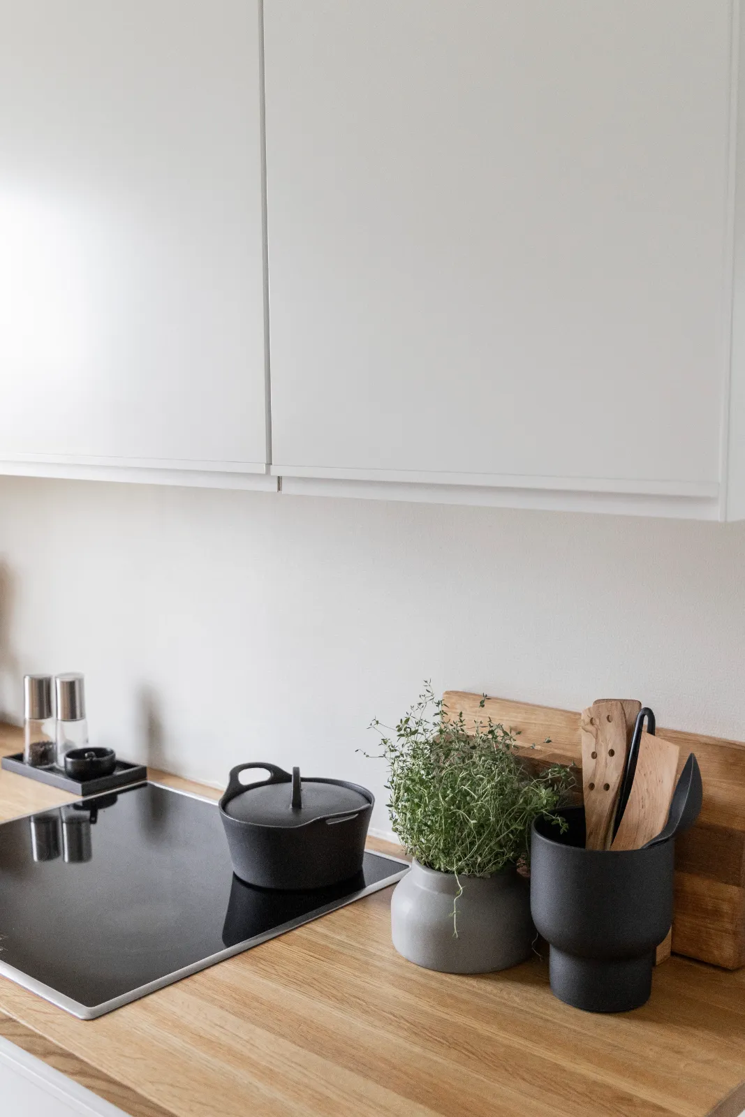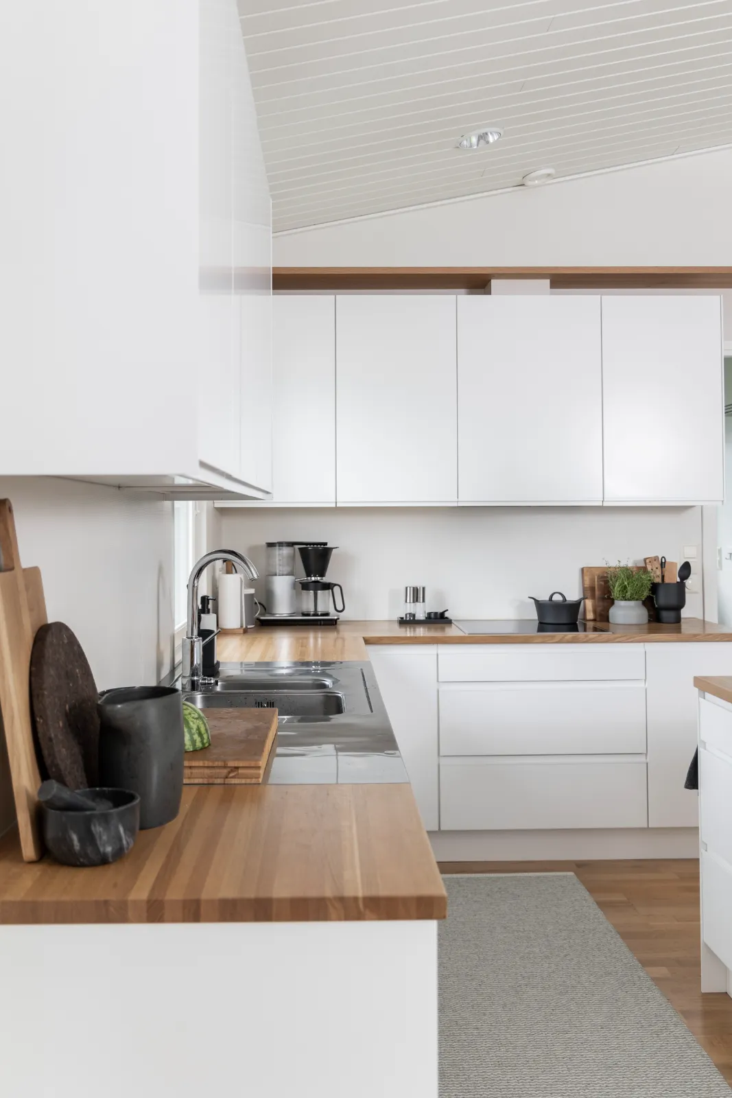 Lopputuloksena on keittiö, jossa jokainen materiaalivalinta on harkittu huolella ja jossa toimivuus ja estetiikka kulkevat käsi kädessä. Keittiö sulautuu luontevasti kodin kokonaisuuteen ja on suunniteltu käytettäväksi, elettäväksi ja yhteisten hetkien jakamiseen vuodesta toiseen.