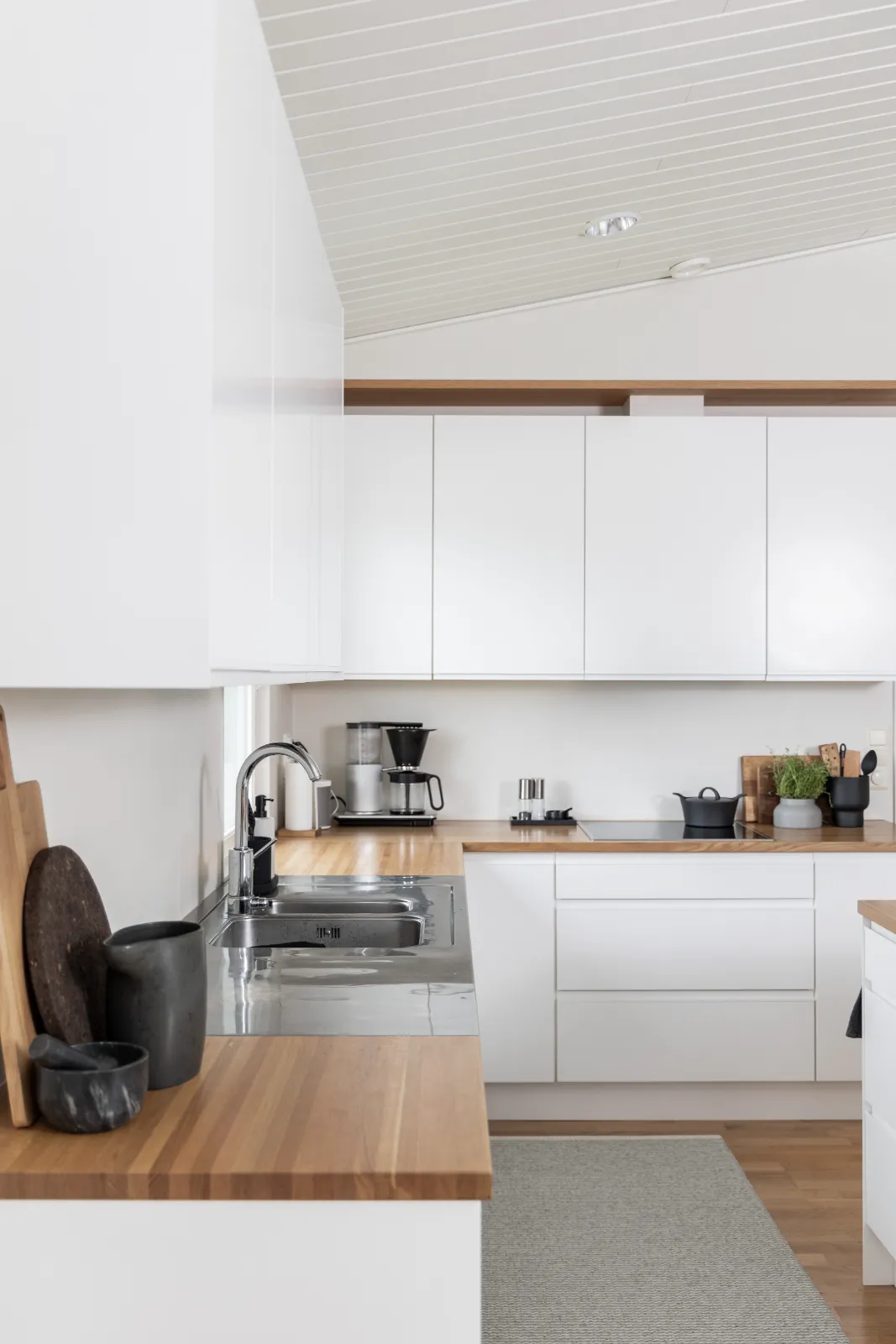 Keittiö yhdistää fiksun säilytysratkaisun, modernin muotoilun ja huolella valitut kodinkoneet. Se on suunniteltu niin arjen sujuvuuteen kuin juhlahetkiin.