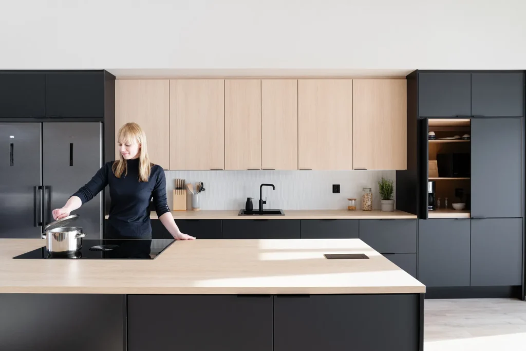 Kun Janssonin perhe alkoi suunnitella uutta keittiötä, tavoite oli selkeä. Nopeasti vaihtuvien trendien sijaan he halusivat luoda keittiön, joka kestää aikaa sekä ulkonäöltään että käytettävyydeltään. Yli 20 vuoden kokemus rakennusalalta on opettanut Marcus Janssonille, kuinka tärkeää on huolellinen suunnittelu, kestävät materiaalit ja arjessa toimiva kokonaisuus.