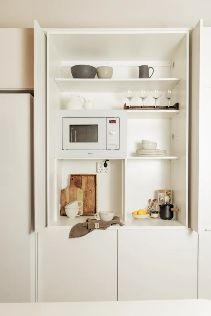 Kun kaapissa käytetään niin sanottuja pocket door ratkaisuja, joissa ovet liukuvat kaapin sivujen sisään, saadaan useita etuja: